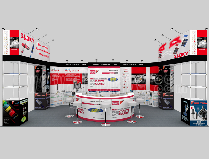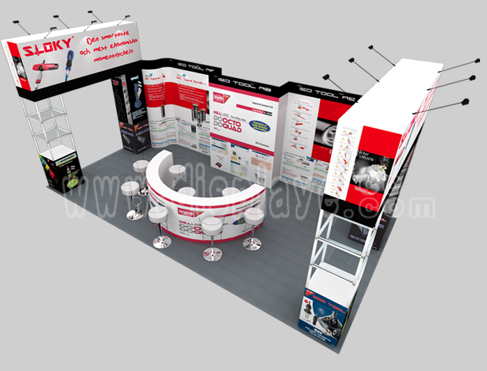 如你想?yún)⒄者@設(shè)計(jì)圖DIY設(shè)計(jì)構(gòu)思你想要的展臺(tái),此造型結(jié)構(gòu)適用3x6m以下方形展位,你可增加你想要的展示功能或更多的引人注目特裝造型。