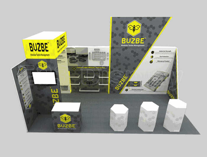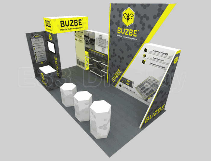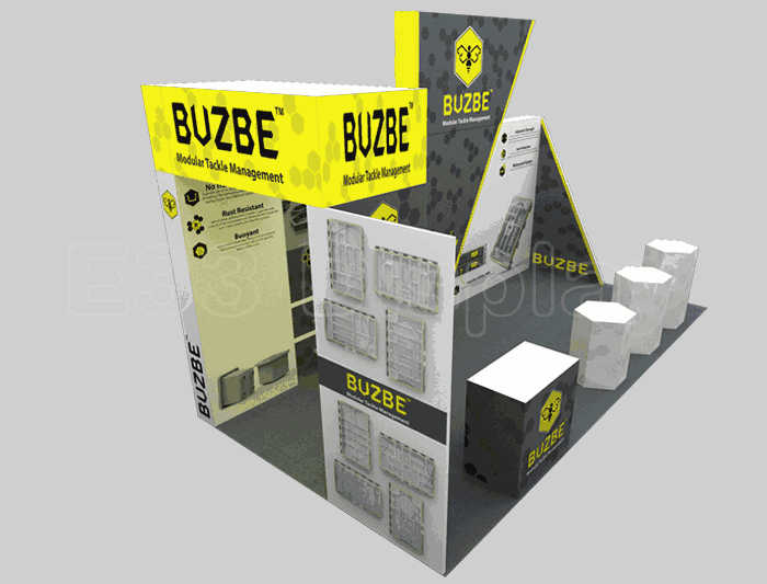 如你想?yún)⒄者@設(shè)計圖DIY設(shè)計構(gòu)思你想要的展臺,此造型結(jié)構(gòu)適用3x6m以下方形展位,你可增加你想要的展示功能或更多的引人注目特裝造型。