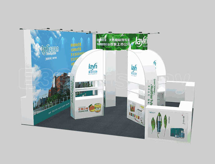 如你想?yún)⒄者@設(shè)計圖DIY設(shè)計構(gòu)思你想要的展臺,此造型結(jié)構(gòu)適用 6x6m以下方形展位,你可增加你想要的展示功能或更多的引人注目特裝造型。