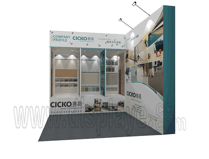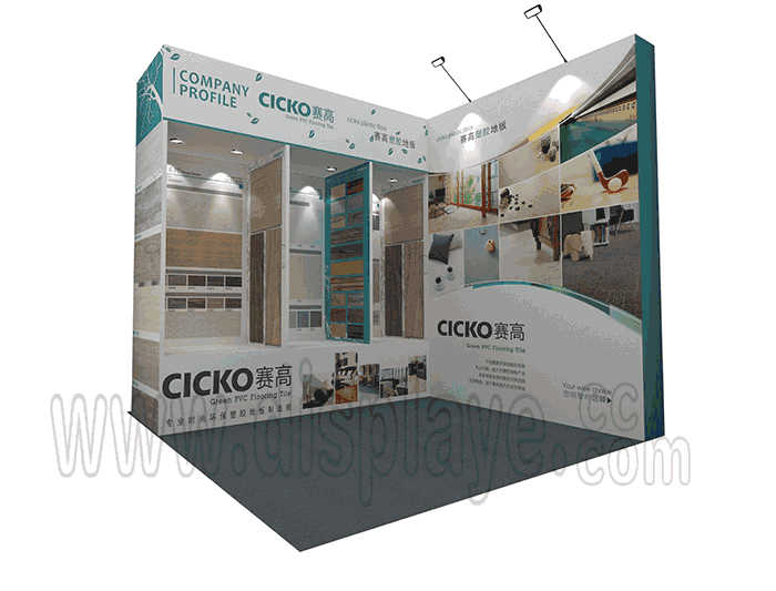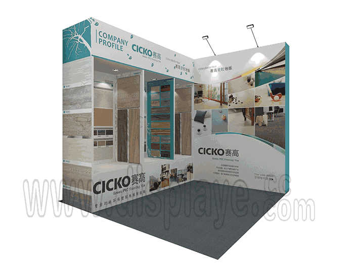 溫馨提示:如你想?yún)⒄者@設(shè)計(jì)圖DIY設(shè)計(jì)構(gòu)思你想要的展臺(tái),此造型結(jié)構(gòu)適用3x3m以下方形展位,你可增加你想要的展示功能或更多的引人注目特裝造型。