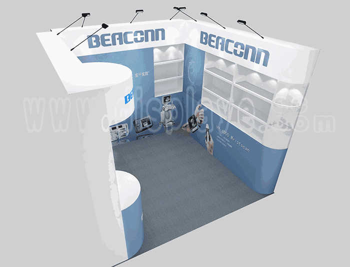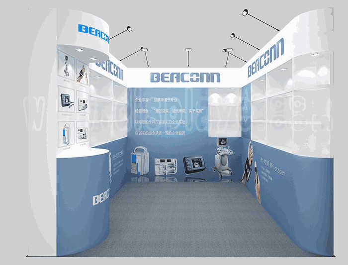 溫馨提示:如你想?yún)⒄者@設(shè)計(jì)圖DIY設(shè)計(jì)構(gòu)思你想要的展臺,此造型結(jié)構(gòu)適用3x3m以下方形展位,你可增加你想要的展示功能或更多的引人注目特裝造型。