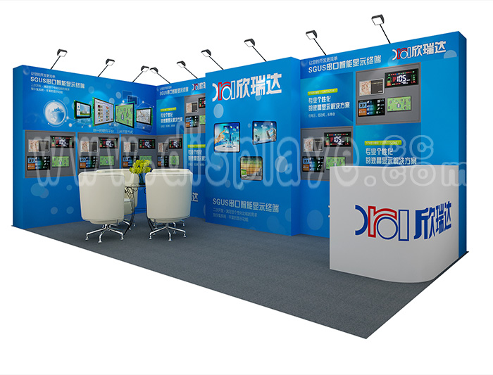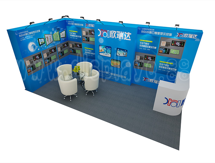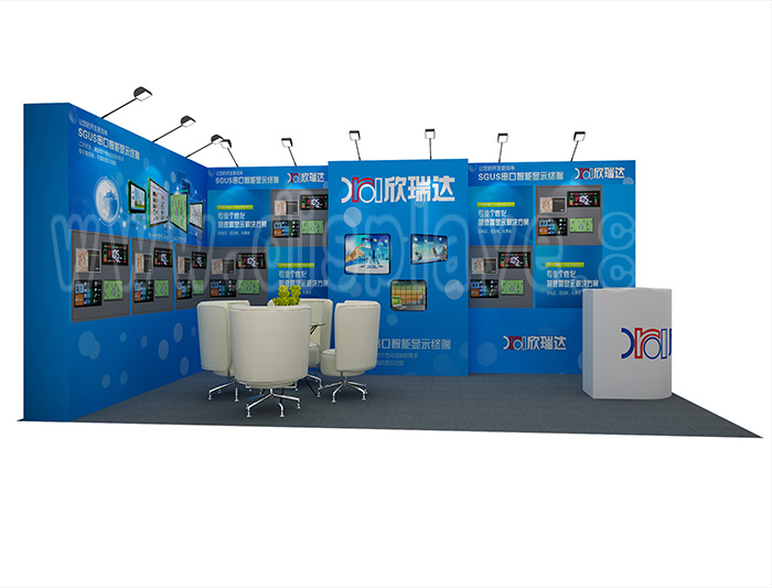 如你想?yún)⒄者@設(shè)計圖DIY設(shè)計構(gòu)思你想要的展臺,此造型結(jié)構(gòu)適用3x6m以下方形展位,你可增加你想要的展示功能或更多的引人注目特裝造型。