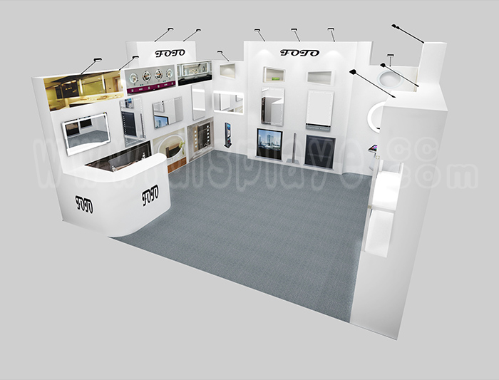 如你想?yún)⒄者@設(shè)計(jì)圖DIY設(shè)計(jì)構(gòu)思你想要的展臺(tái),此造型結(jié)構(gòu)適用5x5m以下方形展位,你可增加你想要的展示功能或更多的引人注目特裝造型。