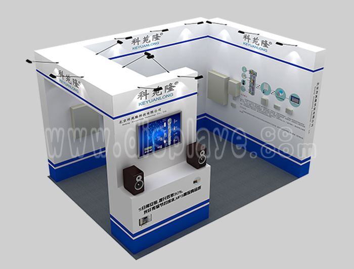 如你想?yún)⒄者@設計圖DIY設計構思你想要的展臺,此造型結構適用3x6m以下方形展位,你可增加你想要的展示功能或更多的引人注目特裝造型。