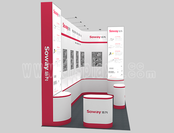 如你想?yún)⒄者@設(shè)計(jì)圖DIY設(shè)計(jì)構(gòu)思你想要的展臺(tái),此造型結(jié)構(gòu)適用3x6m以下方形展位,你可增加你想要的展示功能或更多的引人注目特裝造型。