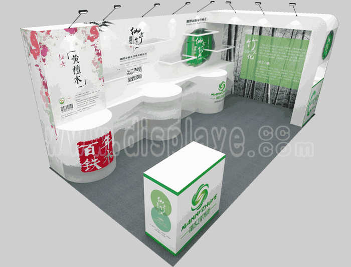 如你想?yún)⒄者@設(shè)計(jì)圖DIY設(shè)計(jì)構(gòu)思你想要的展臺,此造型結(jié)構(gòu)適用3x6m以下方形展位,你可增加你想要的展示功能或更多的引人注目特裝造型。