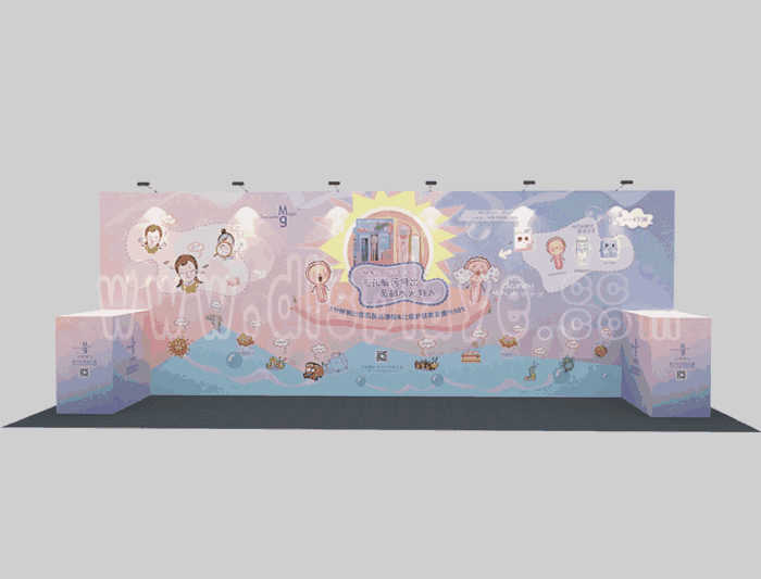 如你想參照這設計圖DIY設計構思你想要的展臺,此造型結構適用3x6m以下方形展位,你可增加你想要的展示功能或更多的引人注目特裝造型。