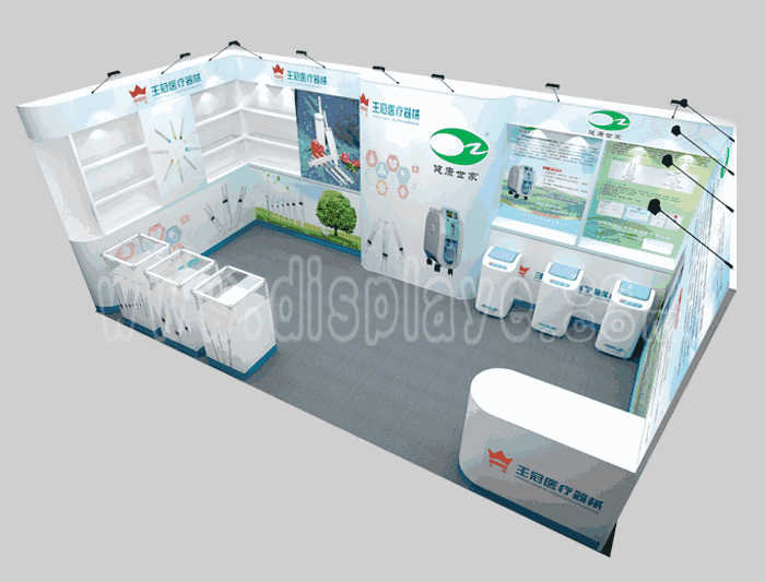 如你想?yún)⒄者@設(shè)計(jì)圖DIY設(shè)計(jì)構(gòu)思你想要的展臺(tái),此造型結(jié)構(gòu)適用3x6m以下方形展位,你可增加你想要的展示功能或更多的引人注目特裝造型。