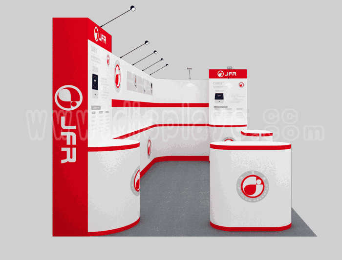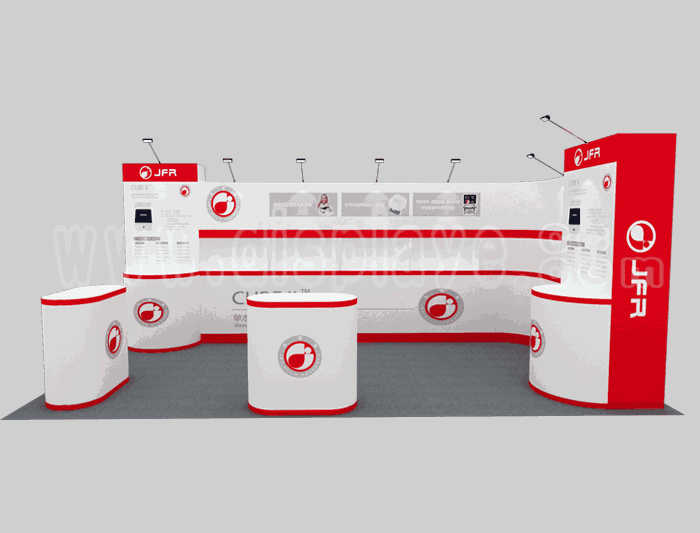 如你想?yún)⒄者@設(shè)計(jì)圖DIY設(shè)計(jì)構(gòu)思你想要的展臺(tái),此造型結(jié)構(gòu)適用3x6m以下方形展位,你可增加你想要的展示功能或更多的引人注目特裝造型。