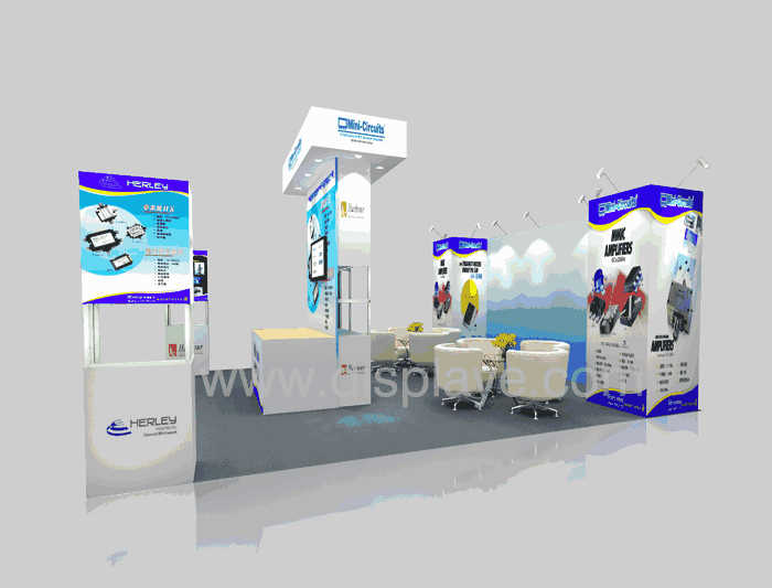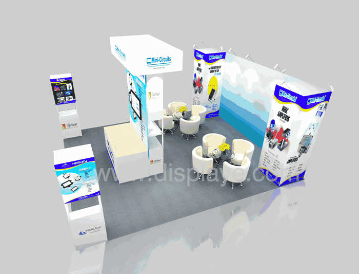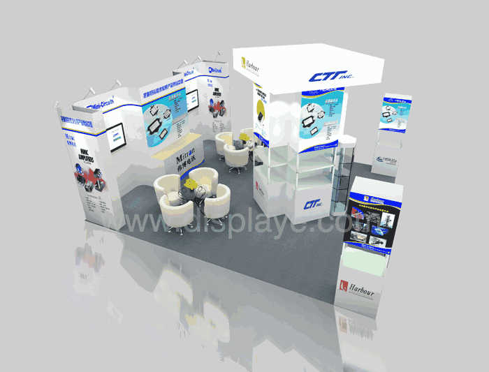 如你想?yún)⒄者@設(shè)計(jì)圖DIY設(shè)計(jì)構(gòu)思你想要的展臺(tái),此造型結(jié)構(gòu)適用6x6m以下方形展位,你可增加你想要的展示功能或更多的引人注目特裝造型。