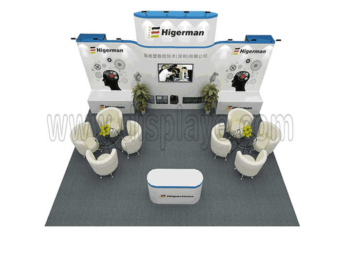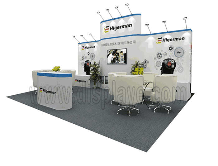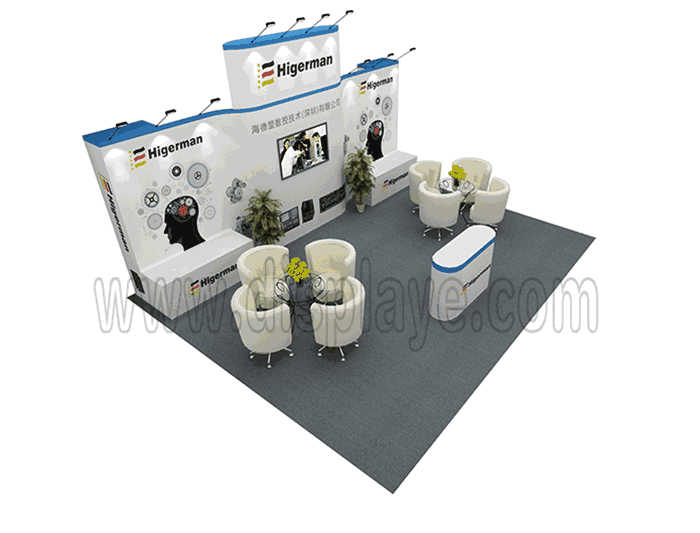 如你想?yún)⒄者@設(shè)計(jì)圖DIY設(shè)計(jì)構(gòu)思你想要的展臺(tái),此造型結(jié)構(gòu)適用6x6m以下方形展位,你可增加你想要的展示功能或更多的引人注目特裝造型。