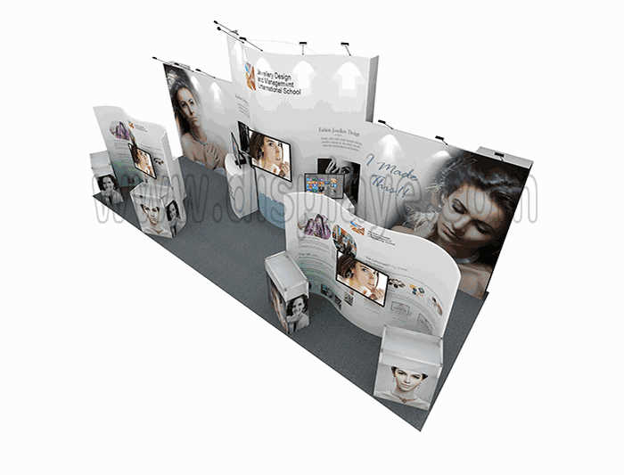 如你想?yún)⒄者@設(shè)計(jì)圖DIY設(shè)計(jì)構(gòu)思你想要的展臺(tái),此造型結(jié)構(gòu)適用3x12m以下方形展位,你可增加你想要的展示功能或更多的引人注目特裝造型。