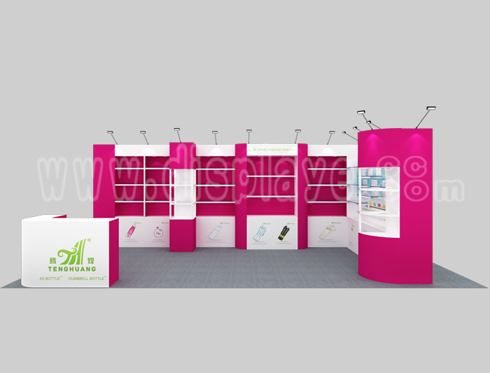 如你想?yún)⒄者@設(shè)計圖DIY設(shè)計構(gòu)思你想要的展臺,此造型結(jié)構(gòu)適用3x6m以下方形展位,你可增加你想要的展示功能或更多的引人注目特裝造型。
