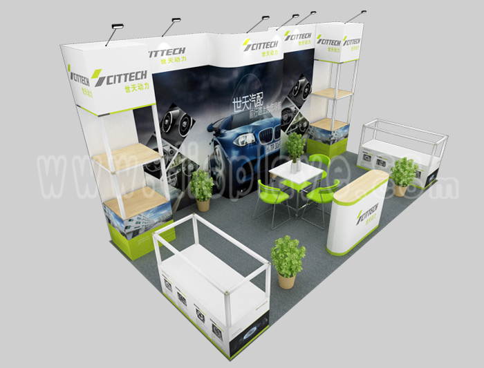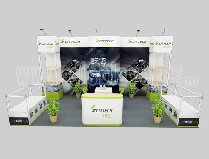 如你想?yún)⒄者@設(shè)計圖DIY設(shè)計構(gòu)思你想要的展臺,此造型結(jié)構(gòu)適用3x6m以下方形展位,你可增加你想要的展示功能或更多的引人注目特裝造型。