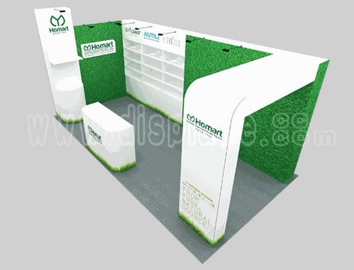 如你想?yún)⒄者@設(shè)計(jì)圖DIY設(shè)計(jì)構(gòu)思你想要的展臺(tái),此造型結(jié)構(gòu)適用3x6m以下方形展位,你可增加你想要的展示功能或更多的引人注目特裝造型。