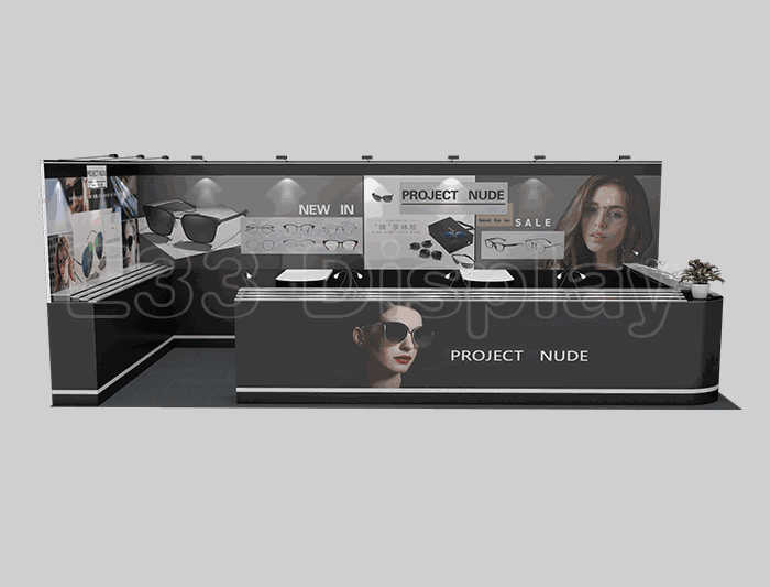 如你想?yún)⒄者@設(shè)計(jì)圖DIY設(shè)計(jì)構(gòu)思你想要的展臺(tái),此造型結(jié)構(gòu)適用3x6m以下方形展位,你可增加你想要的展示功能或更多的引人注目特裝造型。