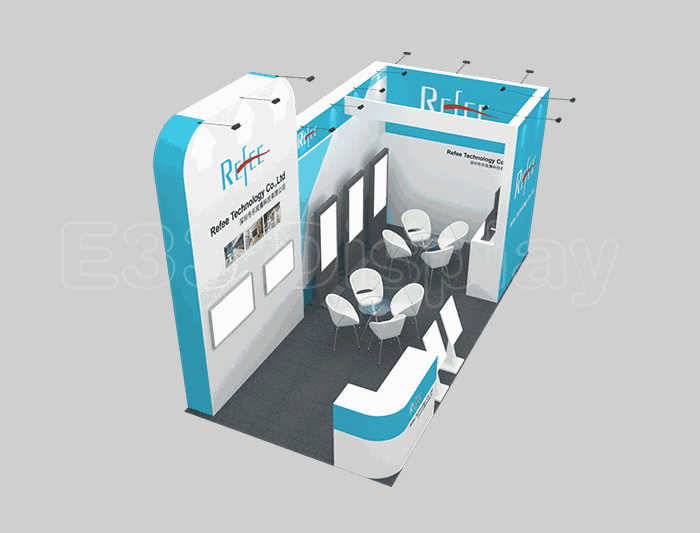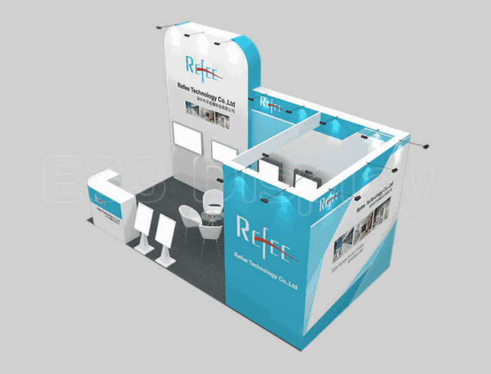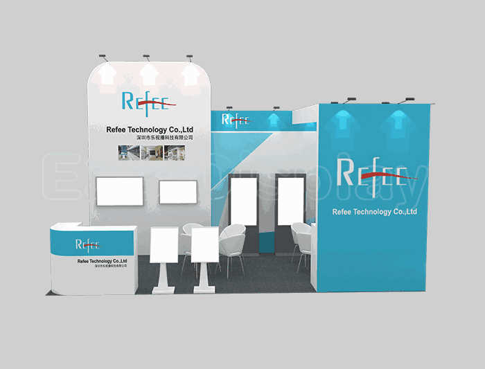 如你想?yún)⒄者@設(shè)計圖DIY設(shè)計構(gòu)思你想要的展臺,此造型結(jié)構(gòu)適用3x6m以下方形展位,你可增加你想要的展示功能或更多的引人注目特裝造型。
