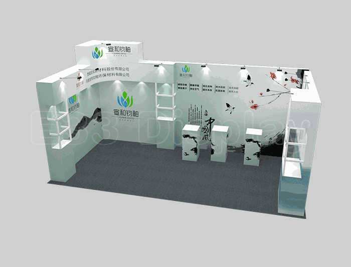 如你想?yún)⒄者@設計圖DIY設計構思你想要的展臺,此造型結構適用3x6m以下方形展位,你可增加你想要的展示功能或更多的引人注目特裝造型。