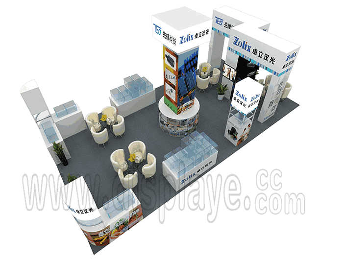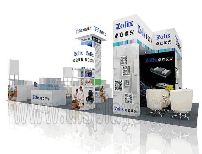 如你想?yún)⒄者@設(shè)計(jì)圖DIY設(shè)計(jì)構(gòu)思你想要的展臺(tái),此造型結(jié)構(gòu)適用6x12m以下方形展位,你可增加你想要的展示功能或更多的引人注目特裝造型。