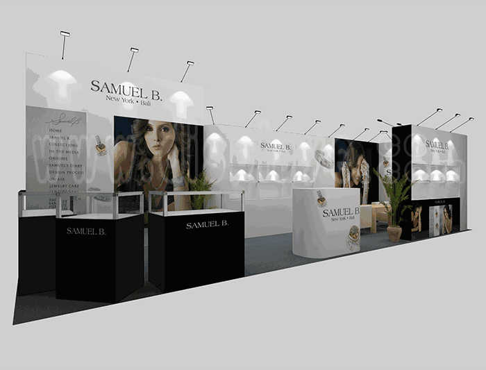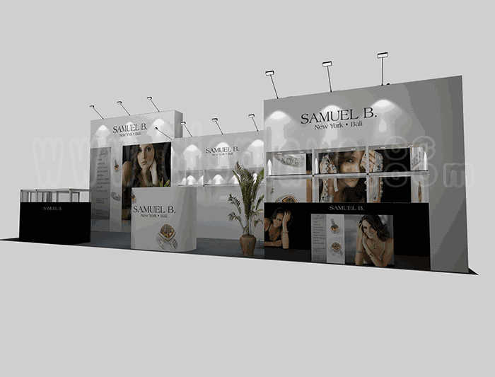 如你想?yún)⒄者@設(shè)計(jì)圖DIY設(shè)計(jì)構(gòu)思你想要的展臺,此造型結(jié)構(gòu)適用3x9m以下方形展位,你可增加你想要的展示功能或更多的引人注目特裝造型。