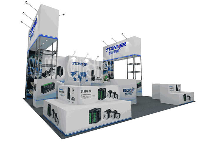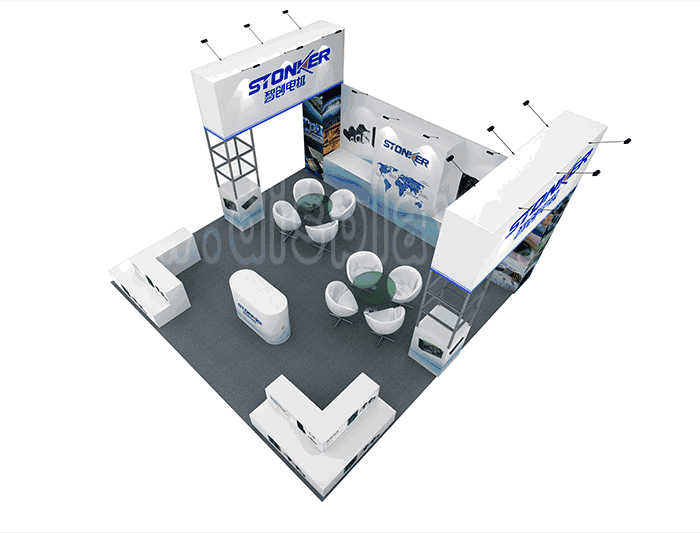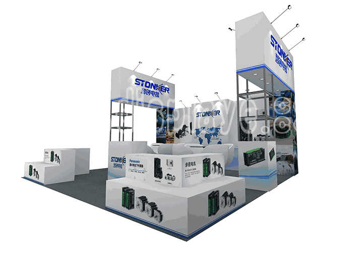 如你想?yún)⒄者@設(shè)計(jì)圖DIY設(shè)計(jì)構(gòu)思你想要的展臺(tái),此造型結(jié)構(gòu)適用 6x6m以下方形展位,你可增加你想要的展示功能或更多的引人注目特裝造型。