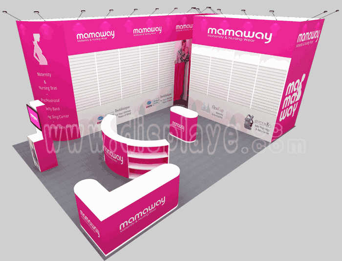 如你想?yún)⒄者@設計圖DIY設計構(gòu)思你想要的展臺,此造型結(jié)構(gòu)適用6x9m以下方形展位,你可增加你想要的展示功能或更多的引人注目特裝造型。