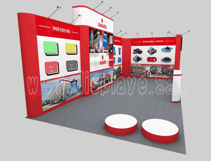 如你想?yún)⒄者@設(shè)計(jì)圖DIY設(shè)計(jì)構(gòu)思你想要的展臺(tái),此造型結(jié)構(gòu)適用4x8m以下方形展位,你可增加你想要的展示功能或更多的引人注目特裝造型。