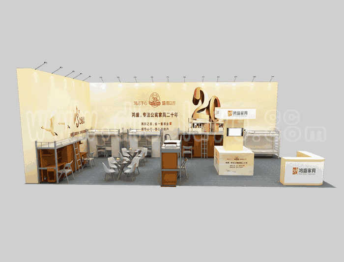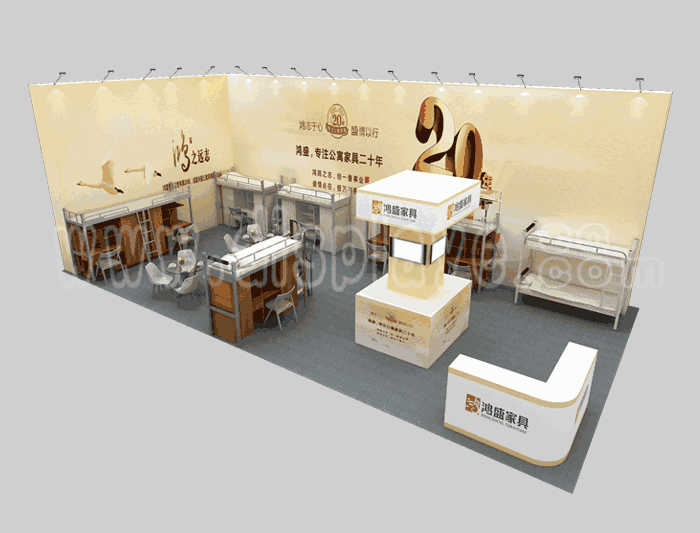 如你想?yún)⒄者@設(shè)計(jì)圖DIY設(shè)計(jì)構(gòu)思你想要的展臺(tái),此造型結(jié)構(gòu)適用 6x12m以下方形展位,你可增加你想要的展示功能或更多的引人注目特裝造型。