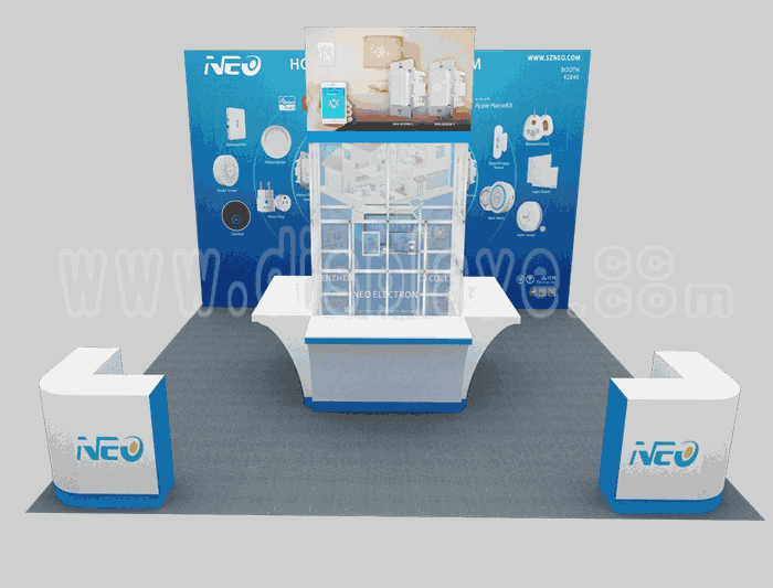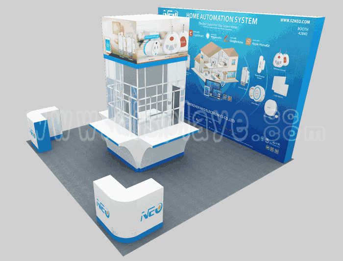如你想?yún)⒄者@設(shè)計(jì)圖DIY設(shè)計(jì)構(gòu)思你想要的展臺(tái),此造型結(jié)構(gòu)適用 6x6m以下方形展位,你可增加你想要的展示功能或更多的引人注目特裝造型。