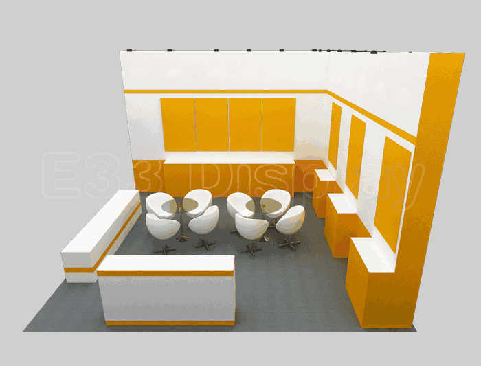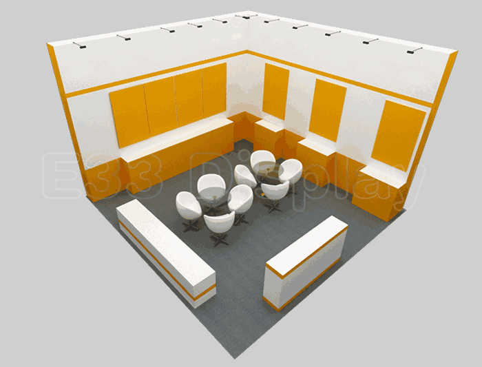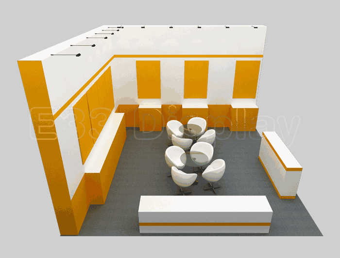 如你想?yún)⒄者@設(shè)計(jì)圖DIY設(shè)計(jì)構(gòu)思你想要的展臺(tái),此造型結(jié)構(gòu)適用 6x6m以下方形展位,你可增加你想要的展示功能或更多的引人注目特裝造型。
