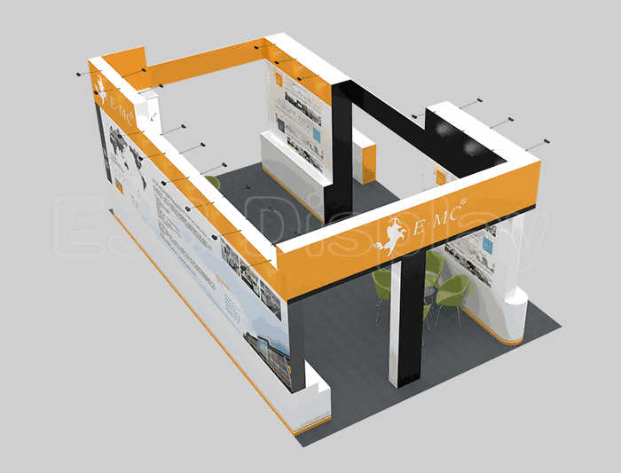 如你想?yún)⒄者@設(shè)計圖DIY設(shè)計構(gòu)思你想要的展臺,此造型結(jié)構(gòu)適用 9x6m以下方形展位,你可增加你想要的展示功能或更多的引人注目特裝造型。