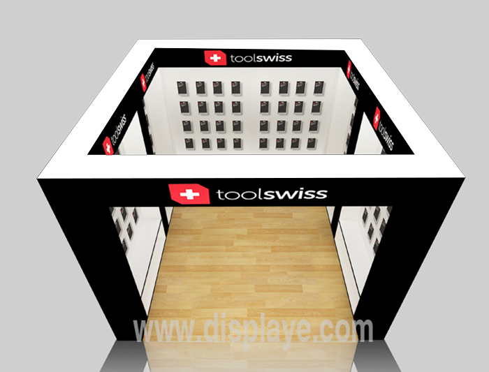 溫馨提示:如你想?yún)⒄者@設(shè)計(jì)圖DIY設(shè)計(jì)構(gòu)思你想要的展臺(tái),此造型結(jié)構(gòu)適用4x4m以下方形展位,你可增加你想要的展示功能或更多的引人注目特裝造型。