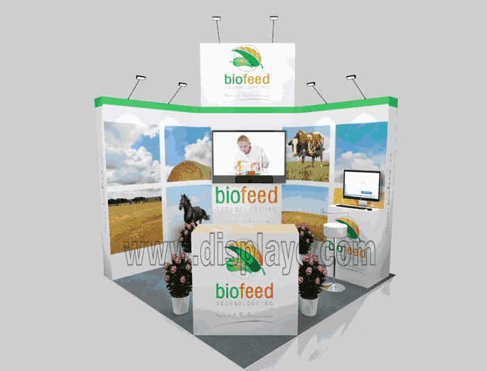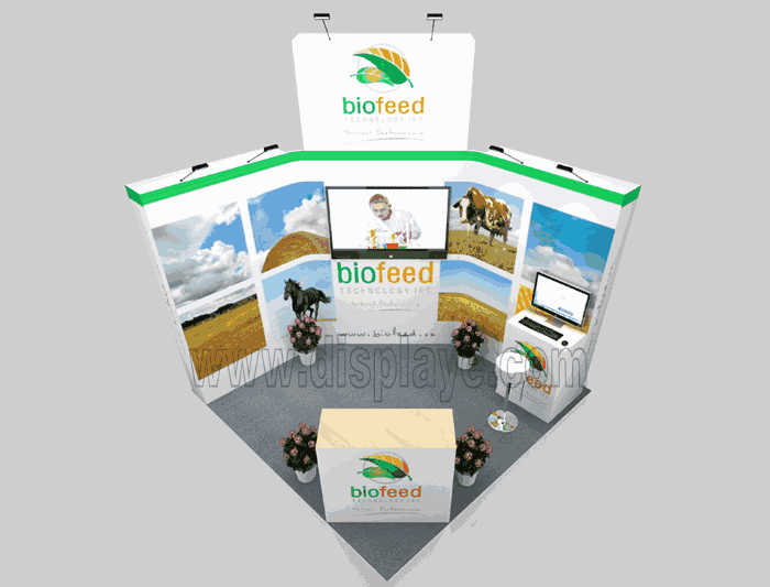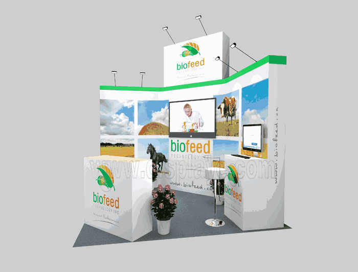 溫馨提示:如你想?yún)⒄者@設(shè)計(jì)圖DIY設(shè)計(jì)構(gòu)思你想要的展臺(tái),此造型結(jié)構(gòu)適用3x3m以下方形展位,你可增加你想要的展示功能或更多的引人注目特裝造型。