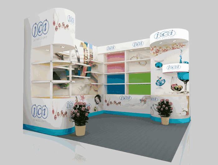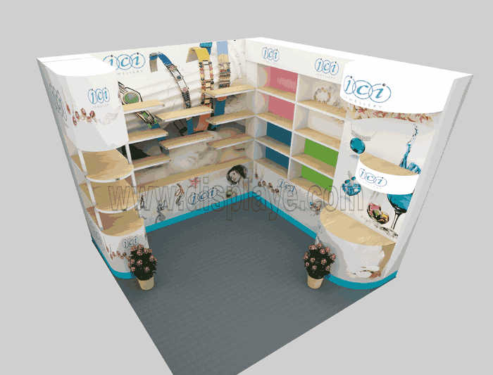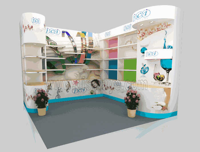 溫馨提示:如你想?yún)⒄者@設(shè)計(jì)圖DIY設(shè)計(jì)構(gòu)思你想要的展臺(tái),此造型結(jié)構(gòu)適用3x3m以下方形展位,你可增加你想要的展示功能或更多的引人注目特裝造型。