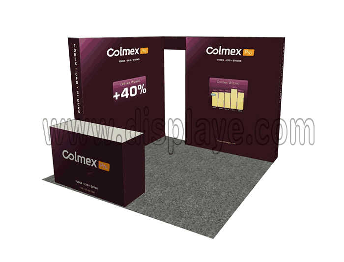 溫馨提示:如你想?yún)⒄者@設(shè)計(jì)圖DIY設(shè)計(jì)構(gòu)思你想要的展臺(tái),此造型結(jié)構(gòu)適用3x3m以下方形展位,你可增加你想要的展示功能或更多的引人注目特裝造型。